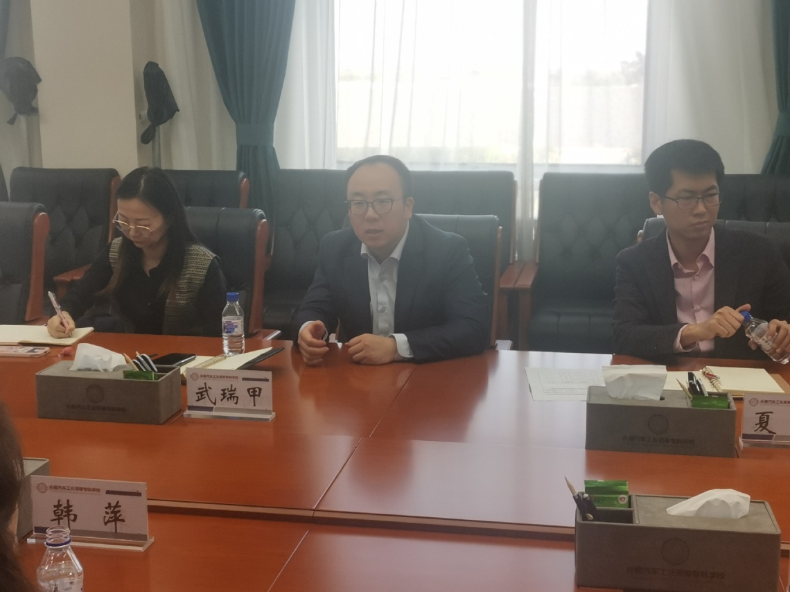 近日,一汽弗迪新能源科技有限公司与长春汽车工业高等专科学校订单班交流会在我校召开。一汽弗迪总经理武瑞甲、人力资源经理夏鑫、人力资源主管金小琳、人力资源专员孙宗勋,我校副校长韩萍、电气工程学院院长颜丹丹参加会议。会议由教务处副处长董世钢主持。
