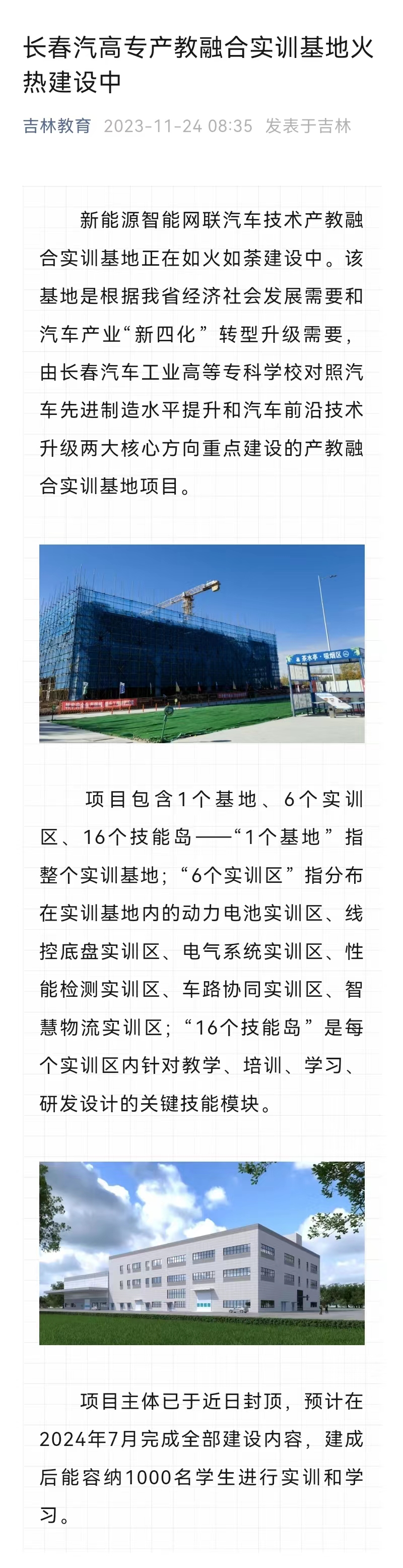 吉林教育——长春汽高专产教融合实训基地火热建设中