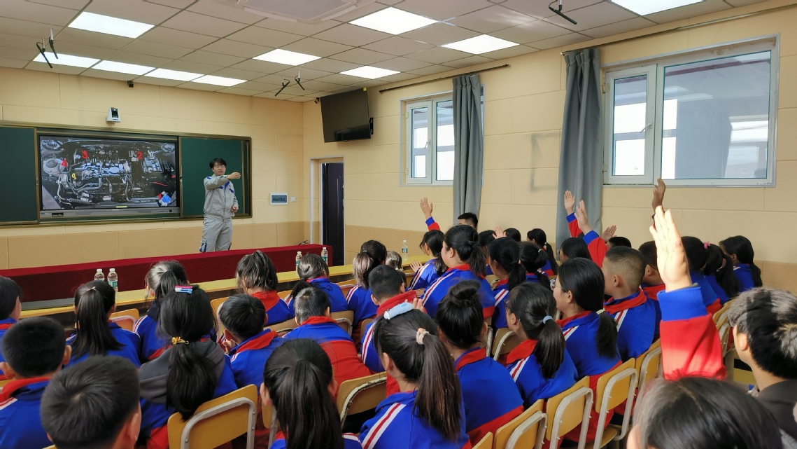 孙雪梅和学生们为希望小学学生讲授汽车文化知识,让“汽车强国梦”的种子在小朋友们心中生根发芽,并勉励大家勤奋学习,健康成长,努力成为优秀的社会主义事业接班人。