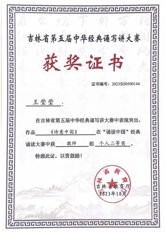 我校教师荣获吉林省第五届中华经典诵写讲大赛“诵读中国”经典诵读大赛二等奖