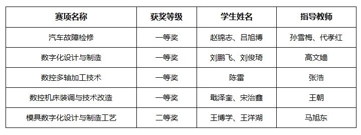 近日,2023年东北三省一区职业院校技能大赛在辽宁省落下帷幕。我校学生在“汽车故障检修”赛项、“数字化设计与制造”赛项、“数控多轴加工技术”赛项、“数控机床装调与技术改造”赛项中荣获一等奖,在“模具数字化设计与制造工艺”赛项中荣获二等奖。