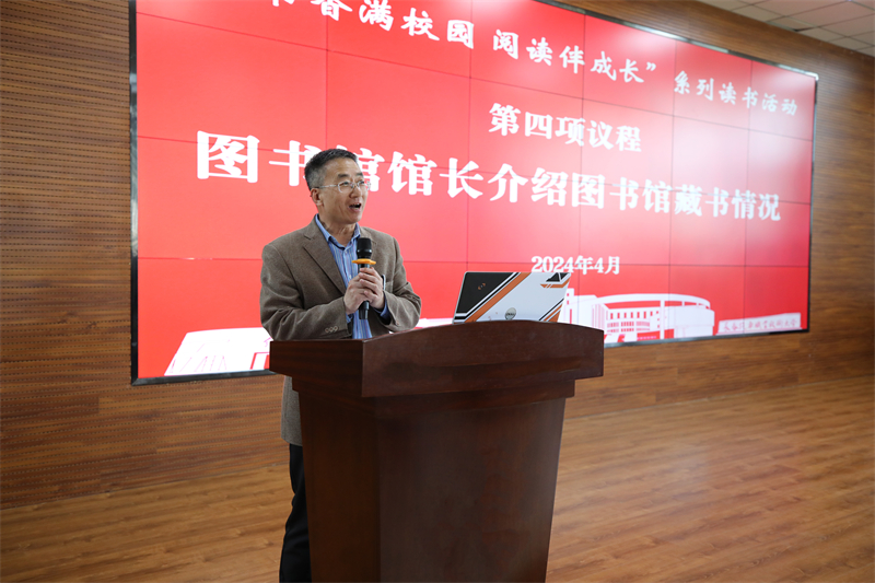 罗春辉介绍了图书馆藏书情况并表示图书馆将继续发挥教育阵地作用,引导广大师生带着思考走进阅读,带着收获走向更生动的社会实践。