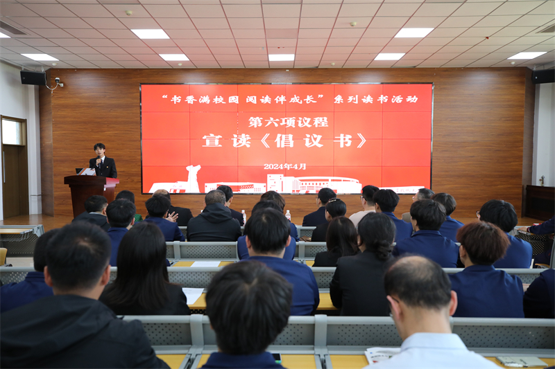 学生代表郑名旭宣读活动倡议书,倡议广大师生要以书为友,把阅读当作一种生活态度和精神追求,努力做到学以励志、学以立德,使阅读成为修身正己的强大动力。