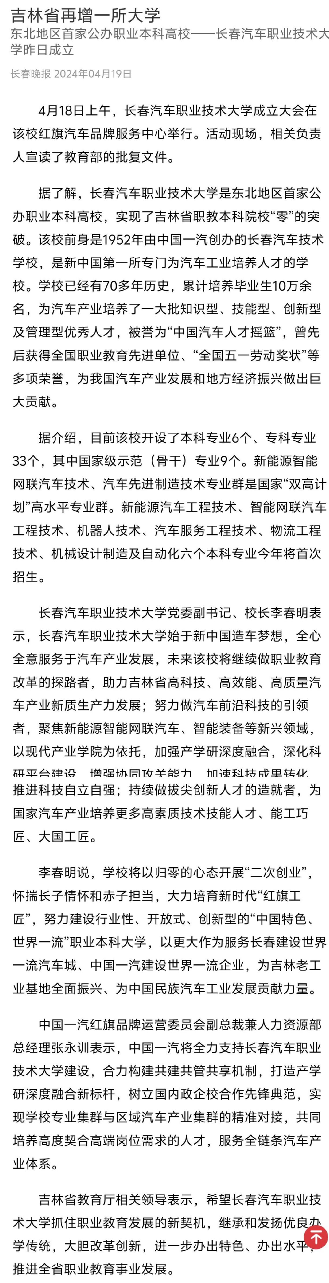 长春晚报——吉林省再增一所大学东北地区首家公办职业本科高校