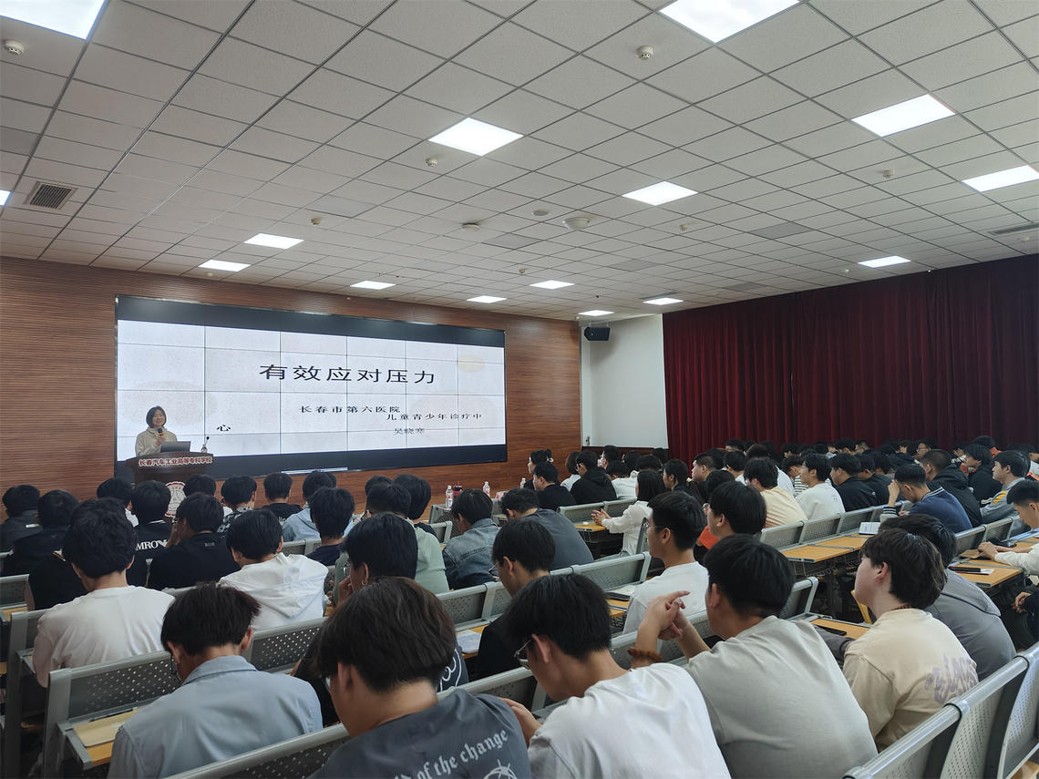本次活动由学生处(团委)主办,马海艳工作室承办,特邀长春市第六医院心理科副主任医师吴晓寒主讲,校团委副书记苏崇刚、汽车工程学院党总支副书记马海艳、团总支书记杨宇及各年级辅导员出席活动,各团总支、学生代表共260余名学生现场聆听。