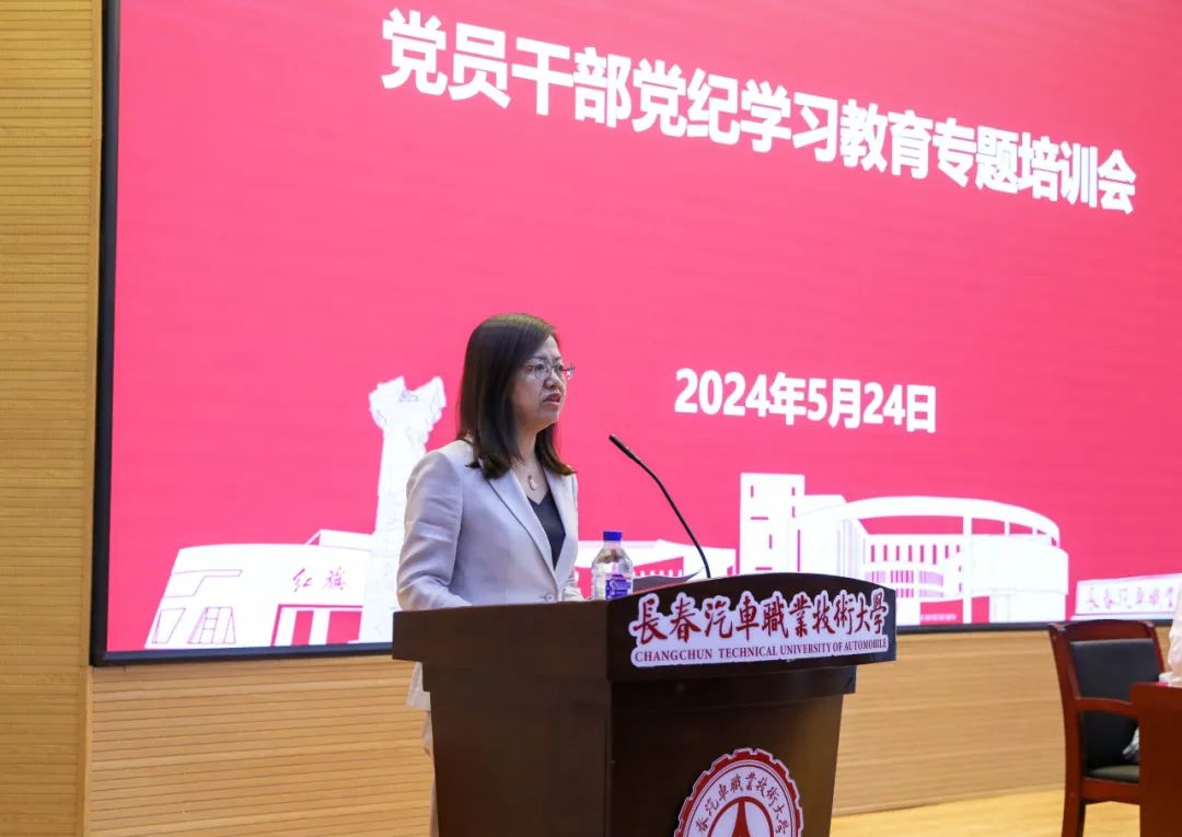 为进一步增强党员干部的纪律意识和规矩意识,以更高标准、更严要求推动党纪学习教育走深走实,5月24日,学校召开党员干部党纪学习教育专题培训会。培训会邀请中共长春市委党校法学教研部黄佳宇教授作专题讲座,学校领导班子、处级干部、科级干部、优秀年轻干部和全体教工党员参加会议,会议由党委副书记赵娜主持。
