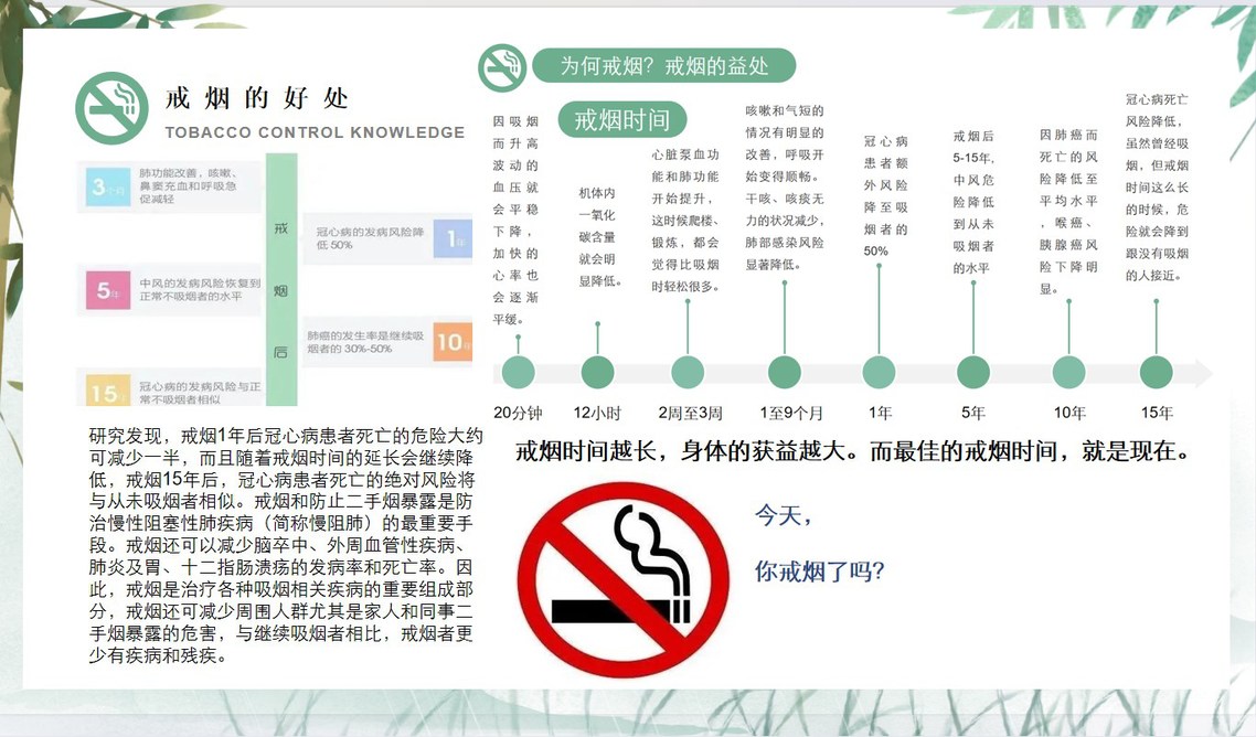 在设计一张禁烟控烟宣传海报活动中,学生们自发设计禁烟控烟宣传海报,并张贴在公寓醒目位置,介绍吸烟可能引发的各种疾病及二手烟对健康的危害、戒烟的益处等知识,加深了同学们对禁烟控烟的认知。