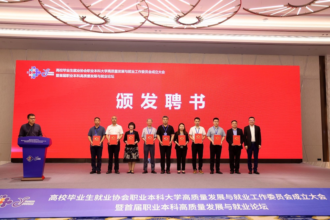 为贯彻落实党的二十大精神,按照教育部、人力资源和社会保障部2024届全国普通高校毕业生就业创业工作会议要求和教育部《关于做好2024届全国普通高校毕业生就业创业工作的通知》等文件要求,5月27日,高校毕业生就业协会职业本科大学高质量发展与就业工作委员会成立大会暨首届职业本科高质量发展与就业论坛在南京召开。我校作为首批会员单位应邀参加会议,副校长丁卓当选工委会副理事长。