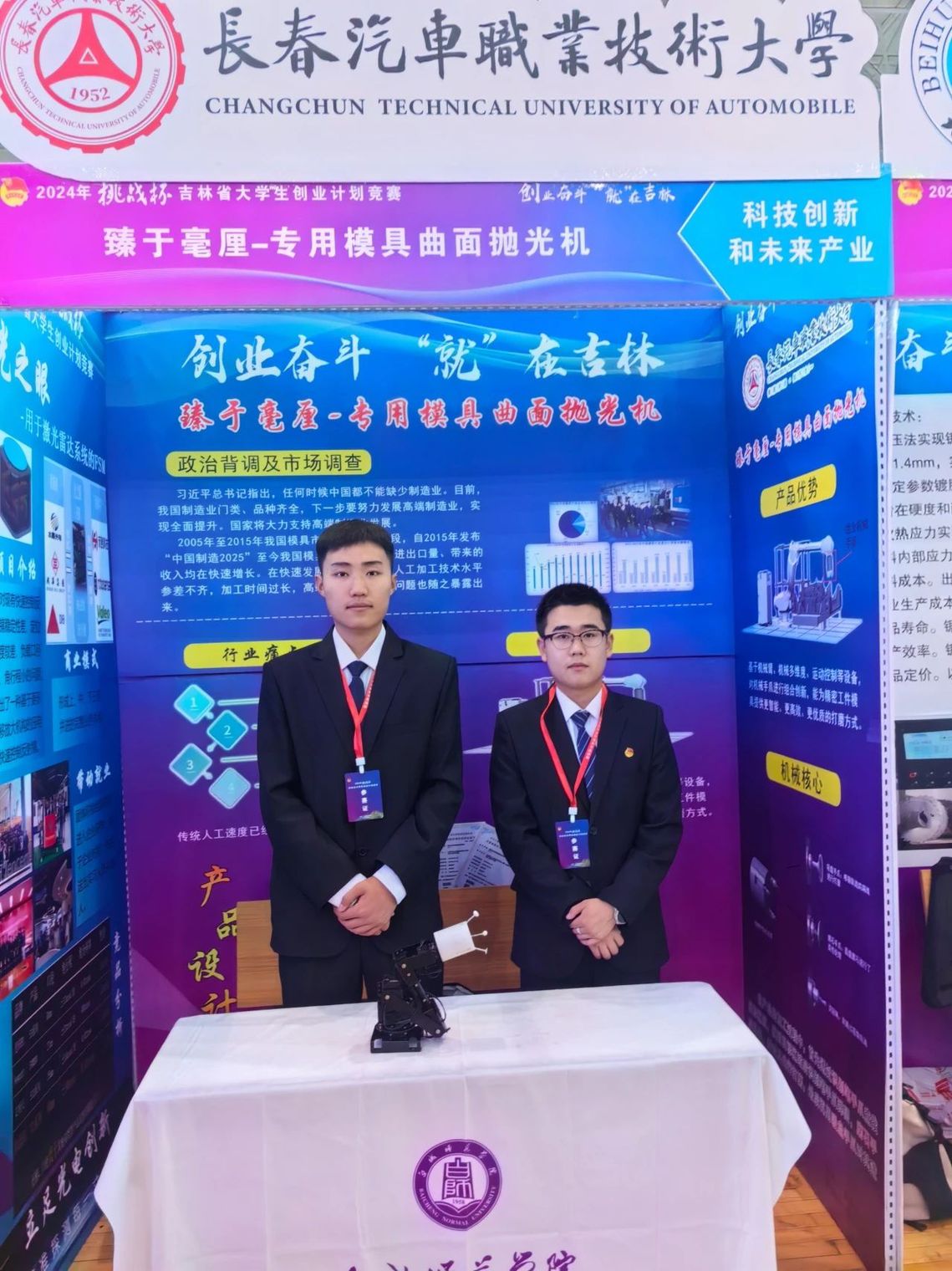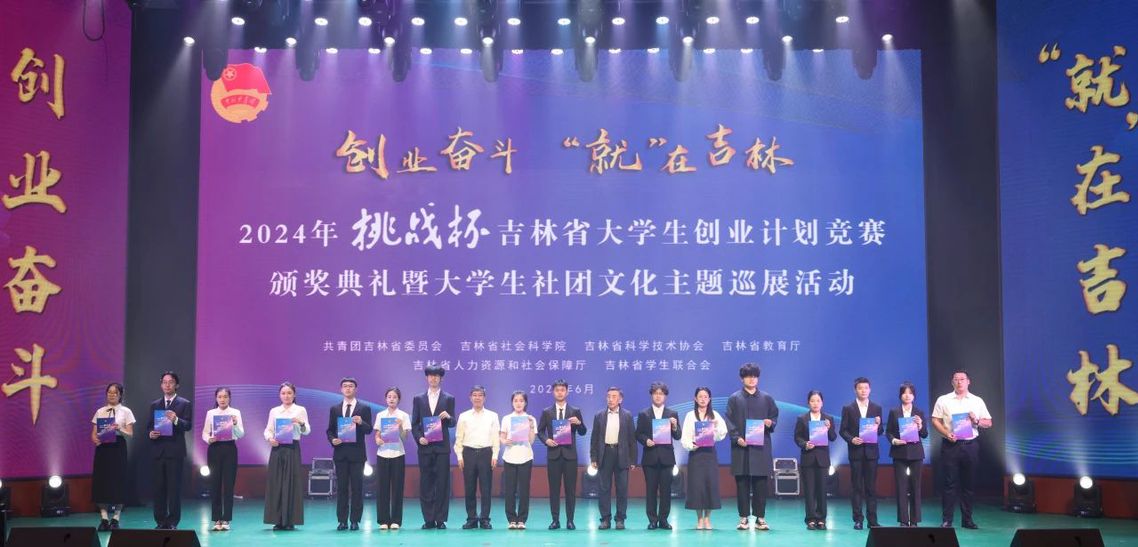 6月14日,由吉林省委宣传部、共青团吉林省委、吉林省社会科学院、吉林省科学技术协会、吉林省教育厅、吉林省人力资源和社会保障厅、吉林省学生联合会主办,白城师范学院承办的“创业奋斗 ‘就’在吉林”2024年“挑战杯”吉林省大学生创业计划竞赛颁奖典礼暨大学生社团文化主题巡展活动在白城师范学院丁香剧院举行。此次竞赛,学校共11支队伍入围终审决赛,最终斩获金奖4项、银奖7项,创历史新高,学校获评“优秀组织单位奖”。本年度学校获奖项目数、综合成绩均位列职业院校组第一名,捧得本届赛事最高荣誉“挑战杯”,创造学校历史上该竞赛的第一次,实现跨越式突破。