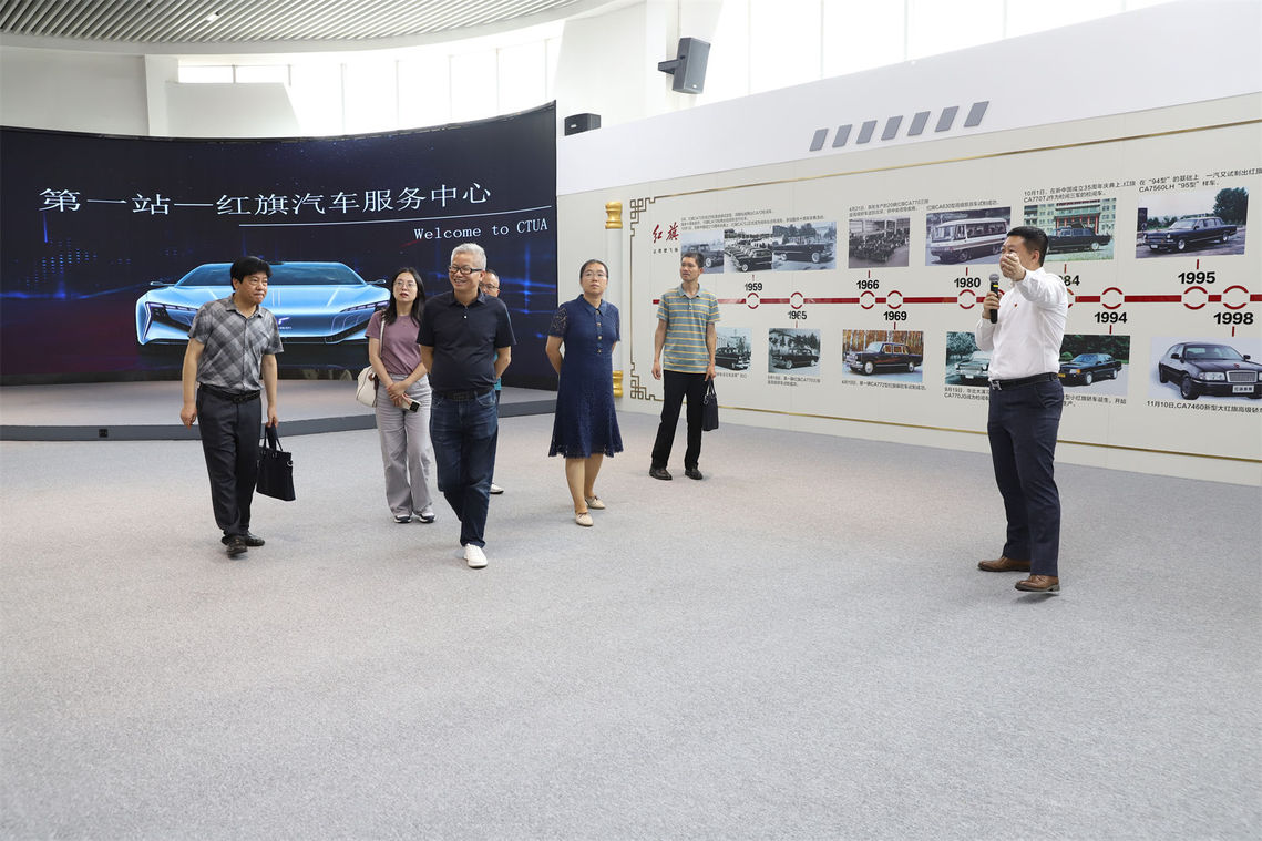 调研组一行先后来到学校红旗汽车品牌服务中心、融媒体中心、新能源汽车技术实训中心、创新创业成果展厅、智能汽车工程研发服务中心、智能制造协同创新中心实地参观考察。