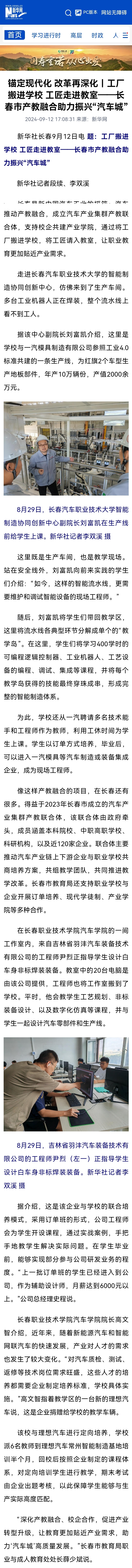 新华网——锚定现代化 改革再深化|工厂搬进学校 工匠走进教室——长春市产教融合助力振兴“汽车城”