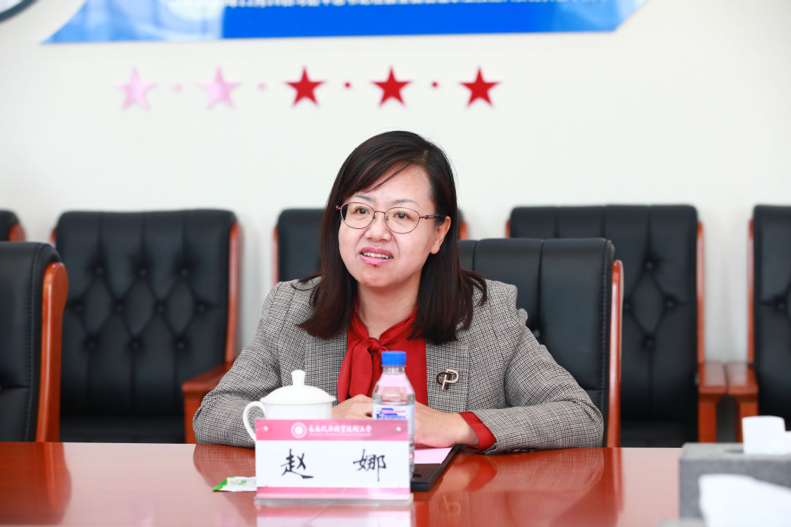 座谈会上,赵娜对刘向阳一行的到来表示热烈欢迎,并详细介绍了学校的历史沿革和发展历程,重点介绍了我校在校园文化建设和专业群建设等方面的成果和经验。
