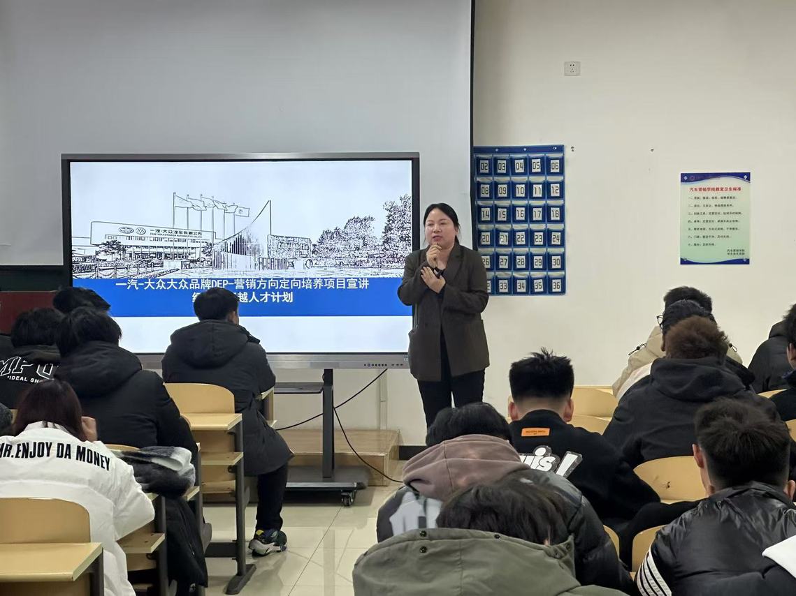 此次宣讲会由一汽奥迪职业院校订单班、一汽大众dep订单班、一汽丰田F-sep订单班和红旗销售精英订单班项目负责人通过生动的案例、详实的数据和丰富的图片,向学生们展示了各自品牌的独特魅力和发展前景,以及订单班的培养模式和课程设置。在宣讲过程中,各订单项目负责人还就学生们关心的问题进行了详细的解答和交流,鼓励学生们积极报名参与订单班的学习和实践,为自己的未来职业发展打下坚实的基础。