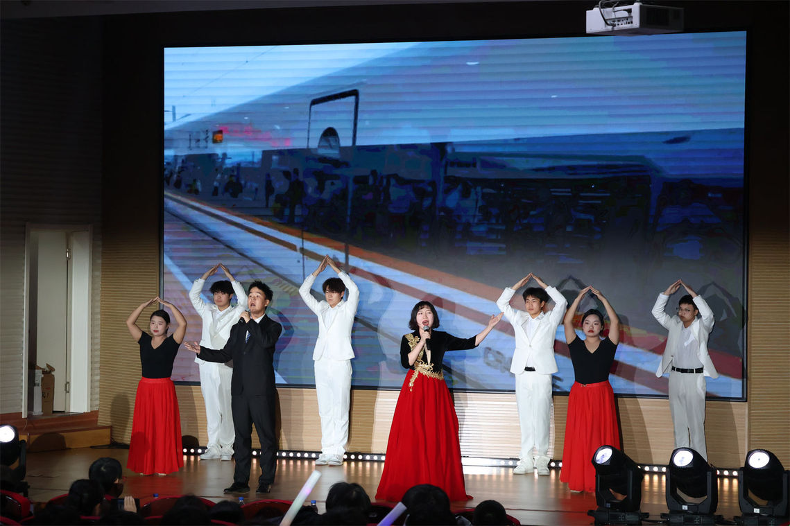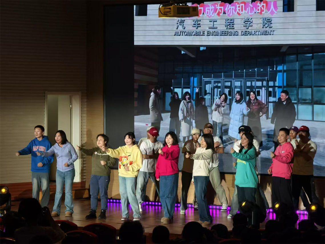 在篇章三“灼灼风华,向阳逐梦”中,汽车工程学院辅导员们用自编自创的歌词传递力量,用才艺诠释温暖与关怀、责任与担当。舞蹈串烧《最亲的人、日不落、护花使者、相亲相爱》以欢快的节奏、充满活力的节拍点燃全场。男生合唱《如愿》,献给每一位心中有爱、眼里有光的长汽大学人。