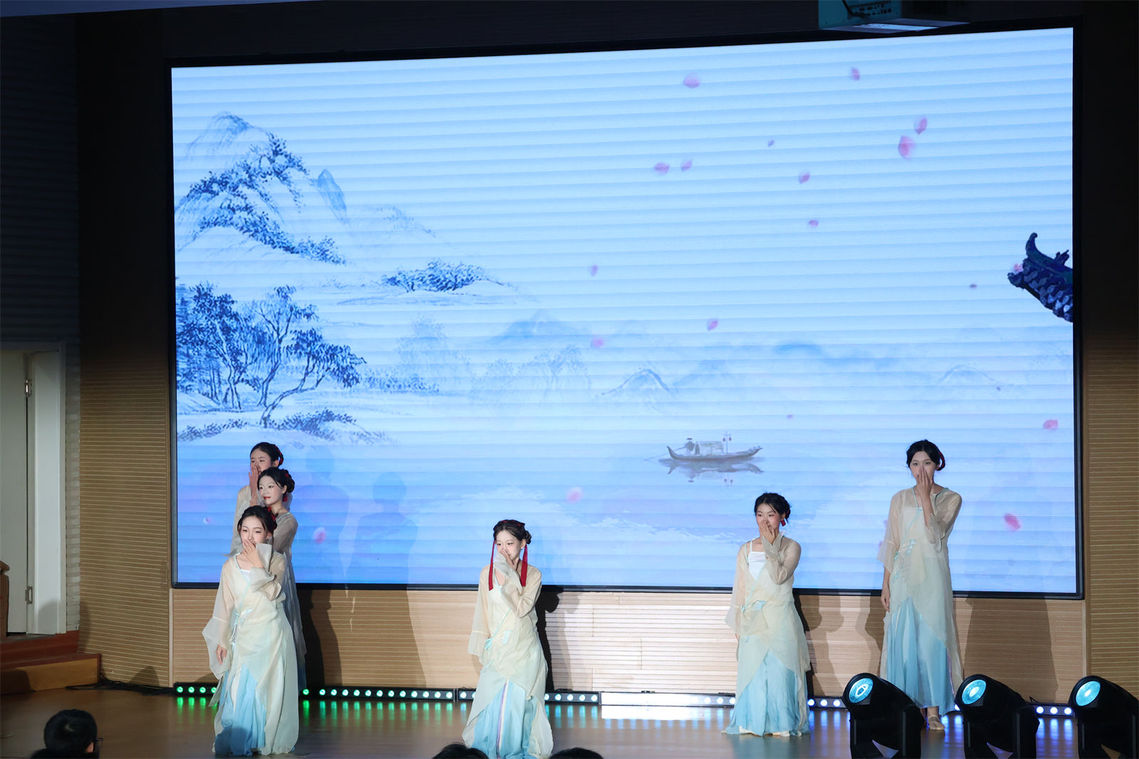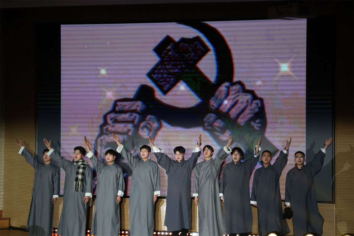 在篇章一“青青子衿,志怀家国”中,师生合唱《国家》用真挚动人的歌声礼赞祖国,祝福祖国明天更加美好。舞蹈《小城谣》以轻盈灵动的舞姿带领师生穿越回孩童时代,表达了青年学子对美好生活的向往和追求。诗朗诵《百年沧桑》带领师生走进那段风雨如晦却又英雄辈出的革命岁月,感受先辈们不屈的斗志。