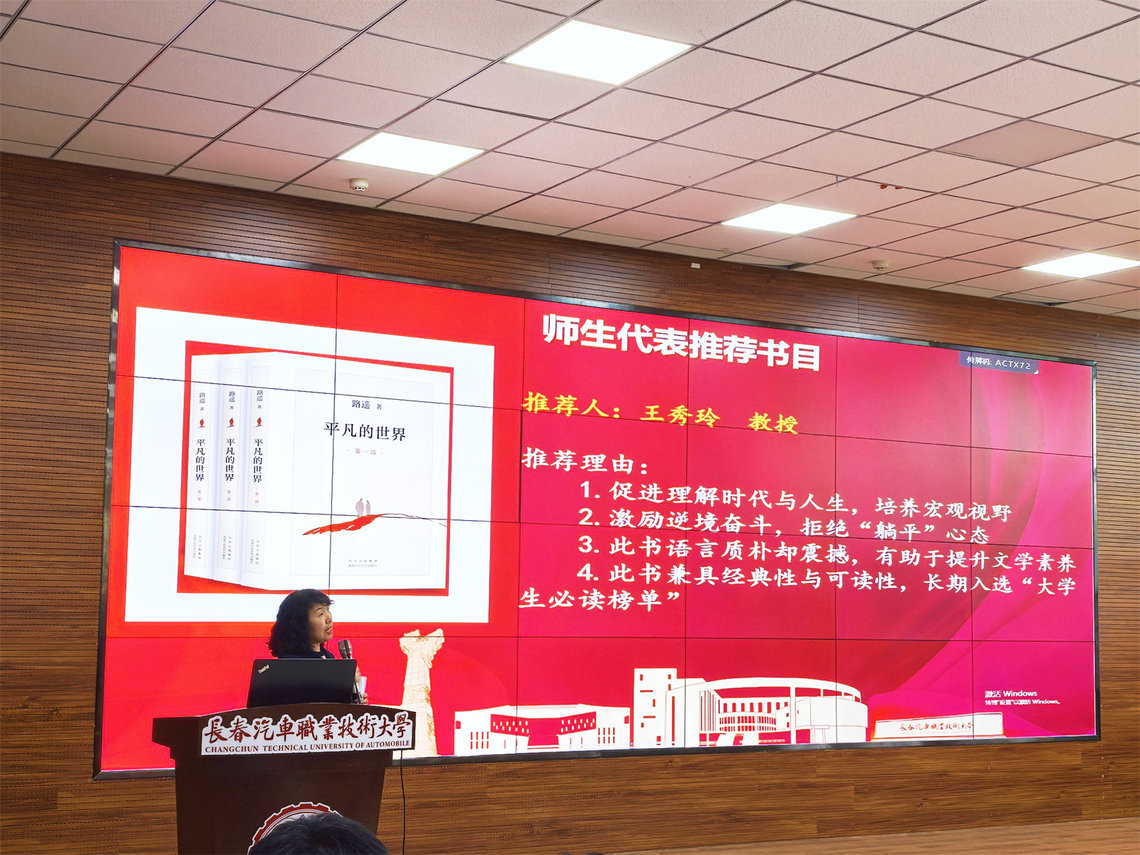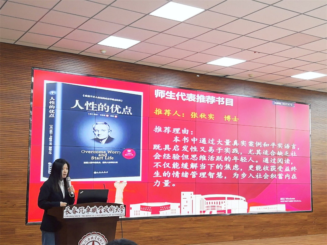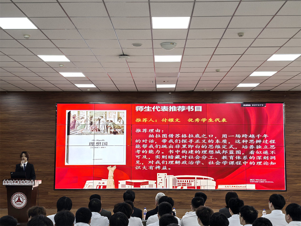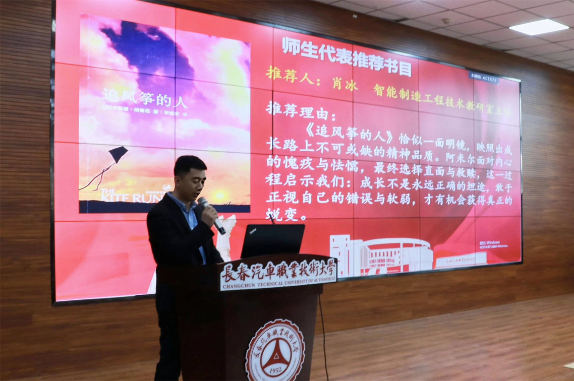 在荐书环节,党总支书记潘孝春、长白山技能名师王炜罡、教授王秀玲、专业负责人肖冰、博士张秋实和优秀学生代表付耀文为青马学员推荐书目,构建起兼具思想引领与人文素养的阅读书单,为青年学子搭建起多维成长的阅读阶梯。