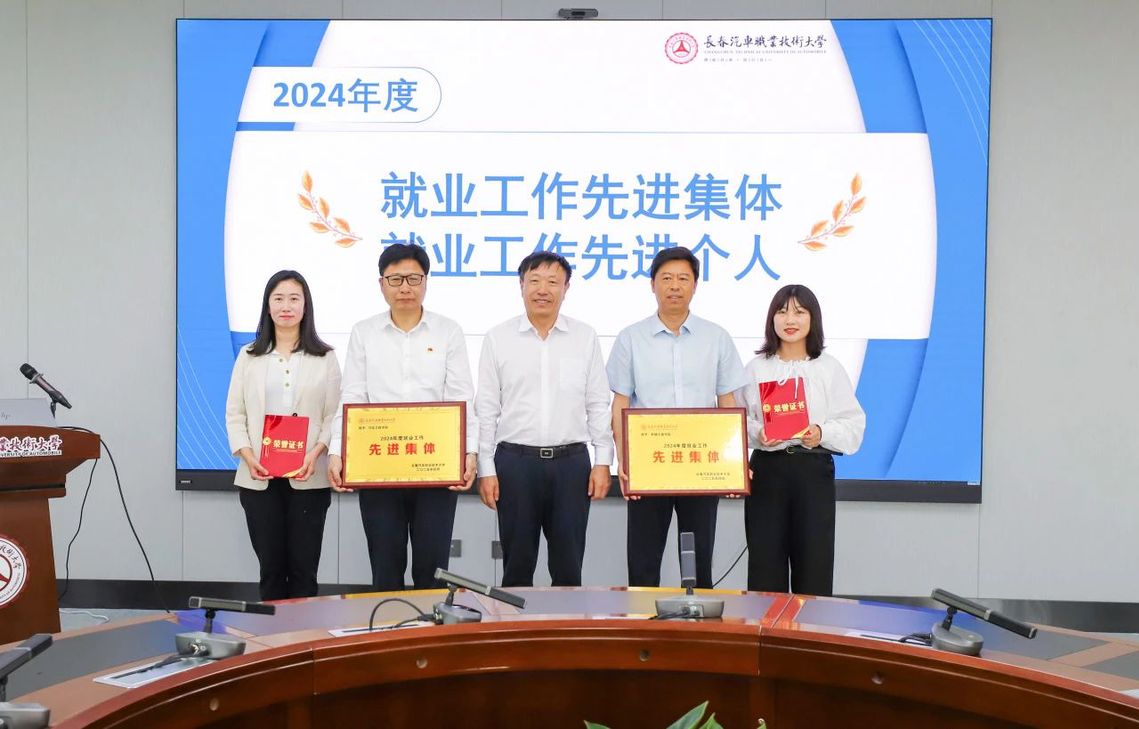 会上,学校对2024年就业工作先进集体和先进个人进行了表彰。机械工程学院、汽车工程学院荣获“就业先进集体”称号,郭延慧、潘楚等7名教师荣获“就业先进个人”称号,学校党委书记、校长李春明为获奖集体及先进个人代表颁奖。