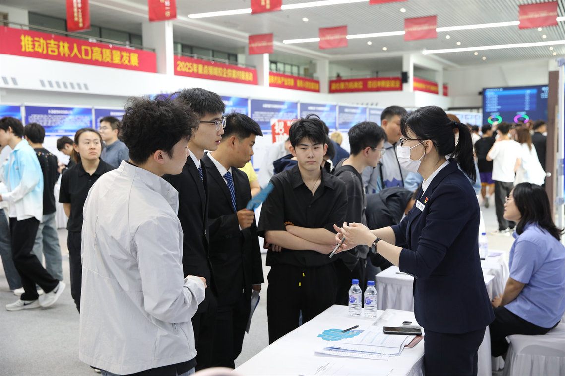 招聘现场气氛热烈,毕业生们手持精心准备的简历,穿梭于各个展位之间,与企业招聘人员深入交流,详细了解岗位要求、薪资待遇、职业发展等情况。据统计,招聘会现场共收到简历1211份,初步达成就业意向500余人。同时,就业政策咨询区为毕业生解读国家和吉林省的就业创业政策,现场发放就业政策材料500余份,接待咨询350余人次;线上直播带岗介绍本次招聘会岗位详情,累计收看量近3万人次。