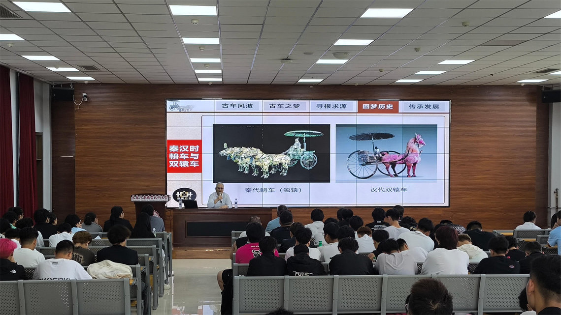 6月5日,汽车工程学院邀请非遗古车模型制作技艺大师卢伟以“中国行走工业的起点”为题开展讲座,带领师生从商周青铜车马的铿锵回响,走进新中国第一辆汽车的轰鸣。汽车工程学院副院长李文博、汽车设计教研室主任郑涛及全体教师,工业设计专业、汽车造型与改装技术专业200余名师生共同聆听了这场融合历史厚度与现代温度的讲座。