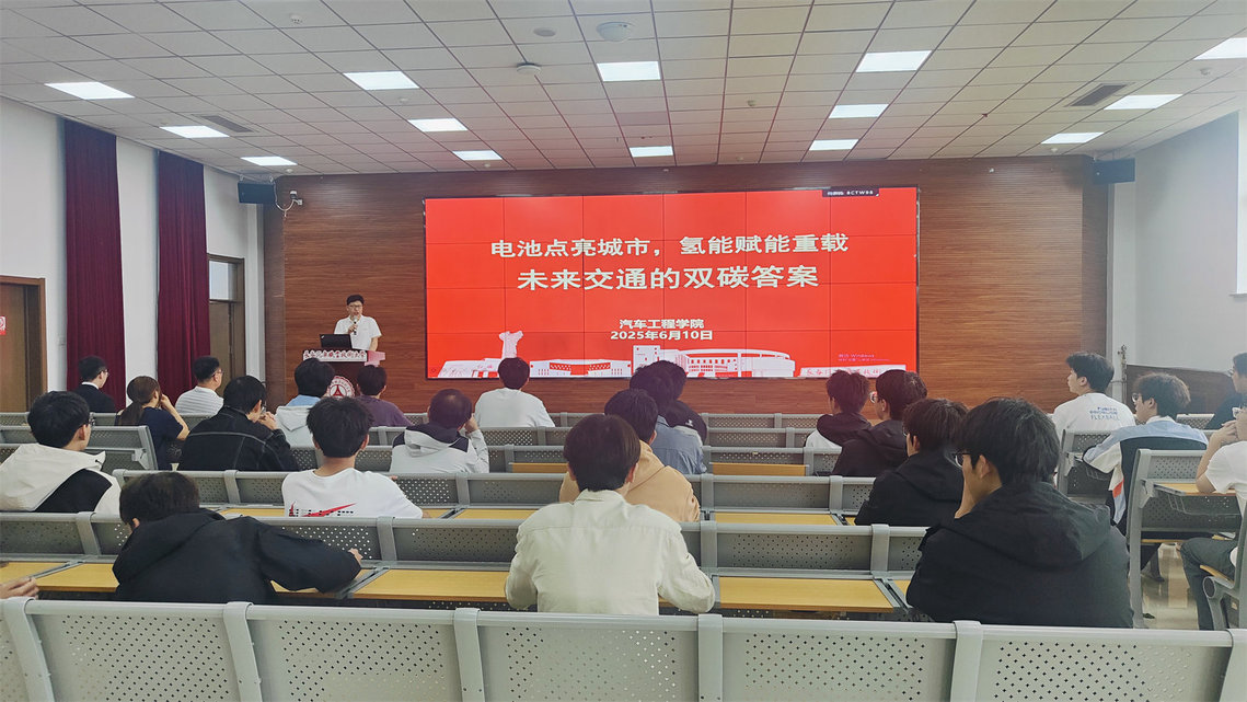 6月10日,汽车工程学院特邀吉林大学材料科学与工程学院材料学系主任王国勇教授,开展题为“未来交通的‘双碳’答案”的专题讲座,深度解析在“双碳”目标下电池与氢燃料两条技术路线的发展路径。汽车工程学院院长李东兵、新能源教研室全体教师以及136名优秀学生代表齐聚现场,共同聆听这场学术盛宴。
