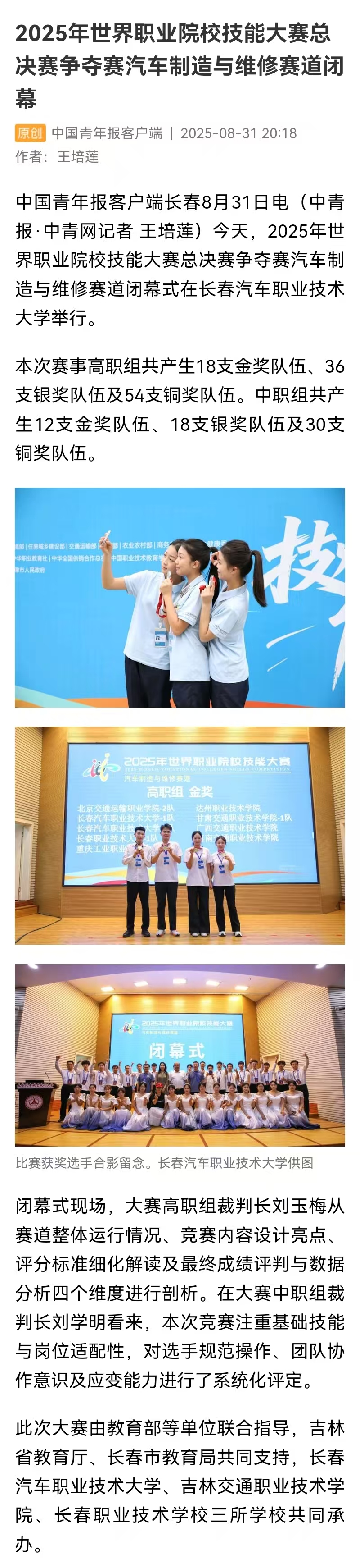中国青年报——2025年世界职业院校技能大赛总决赛争夺赛汽车制造与维修赛道闭幕