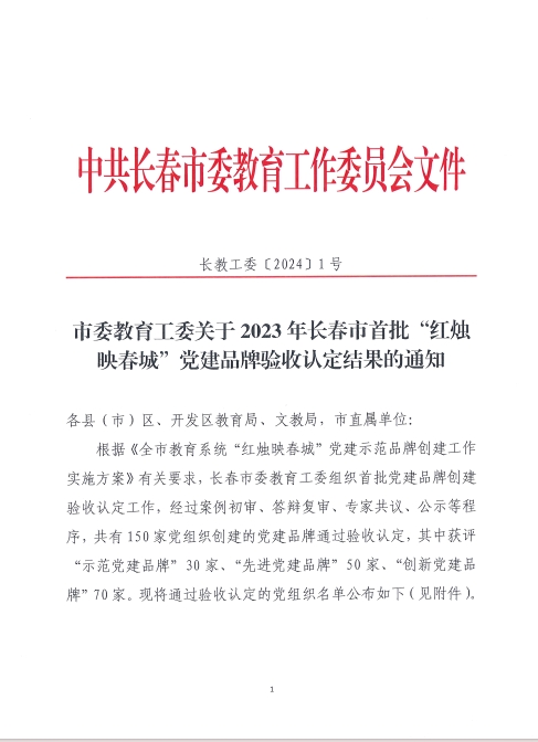 喜报 | 榜上有名!长春市教育系统首批“红烛映春城”党建品牌创建验收认定结果出炉