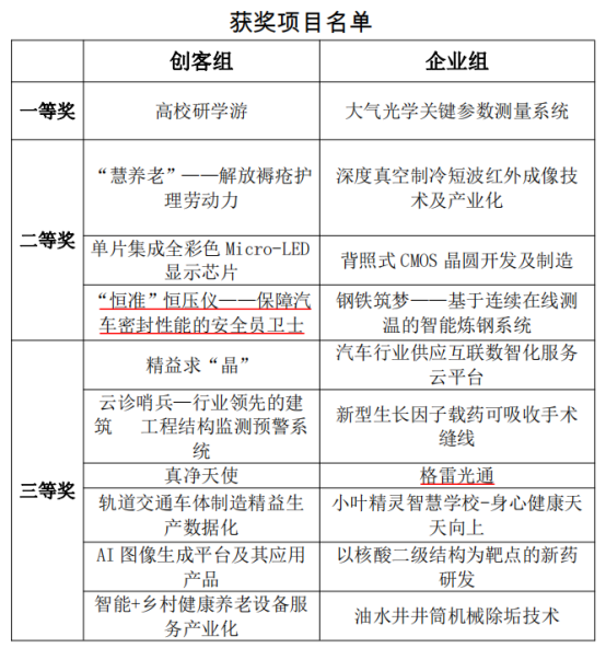 7月21日,由长春市工业和信息化局主办的第八届“创客中国”中小企业创新创业大赛长春地区赛顺利落幕,我校创新创业学院参赛项目《“恒准”恒压仪——保障汽车密封性能的安全员卫士》和《格雷光通》在82个参赛项目中脱颖而出,分别获得创客组二等奖、创业组三等奖的好成绩。获奖名单本次大赛以“增能力、长本领、建新功”为主题,围绕全市企业数字化转型、汽车产业集群上台阶、释放新兴动能等热点方向挖潜、培育优秀项目和优秀团队。比赛过程中,我校参赛团队与运营多年的中小企业优秀参赛选手同台竞技,给现场评委及观众留下了深刻印象,并吸引了长兴基金、吉林省中科创业投资管理有限公司的投资关注。路演现场获奖选手上台领奖在下一步工作中,学校将继续创新人才培养模式,营造创新创业氛围,着力培养具有创新意识和创业能力的高素质技术技能型人才,持续为区域经济发展贡献力量。撰稿:创新创业学院 王航 审编:党委宣传统战部